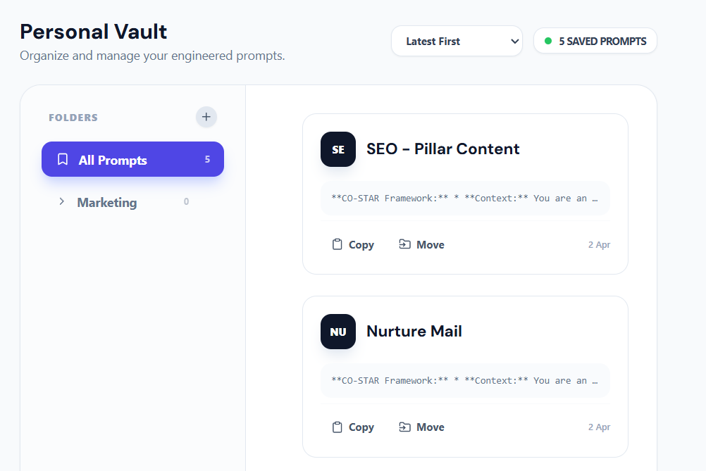 🚀 New Updates to GPT Prompt Maker Introducing Prompt Vault — built to organize and scale how prompts are used. 📁 Create folders to organize saved prompts 🔁 Save & reuse structured prompts instantly ⚡ Generate once. Use repeatedly. More powerful features inside: 📚 525+ growing prompt library 🖼️ Image prompt builder 🤖 Agent & system prompt builder From scattered prompts → to a structured workflow. Built for faster execution. Designed for better outputs.