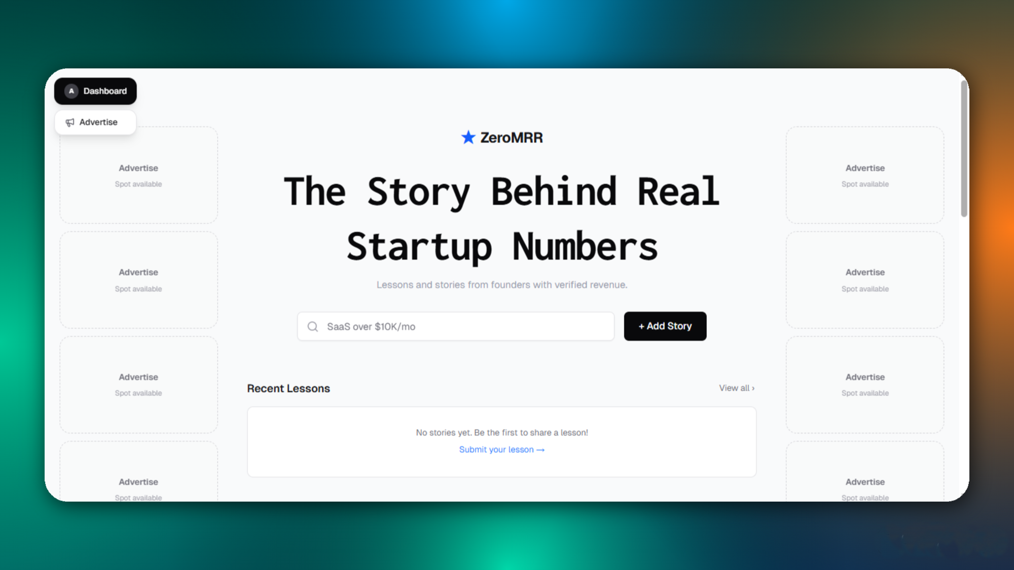 ZeroMRR· 6hHi Everyone, I am Aayan a 14 y/o Builder I Came here to learn and found out That Everyone here is posting products. But almost no one is posting the real story behind them. The 0 users phase. The confusion. The “is this even worth it?” moments. I’m 14 and just built ZeroMRR for that. A place where you can take your TrustMRR link and write your full journey + lessons — not just numbers. I launched 24 hours ago. 0 stories so far. So I’m starting it myself. If you’ve posted here, you already have a journey. Might as well tell the real version: zeromrr.netlify.app