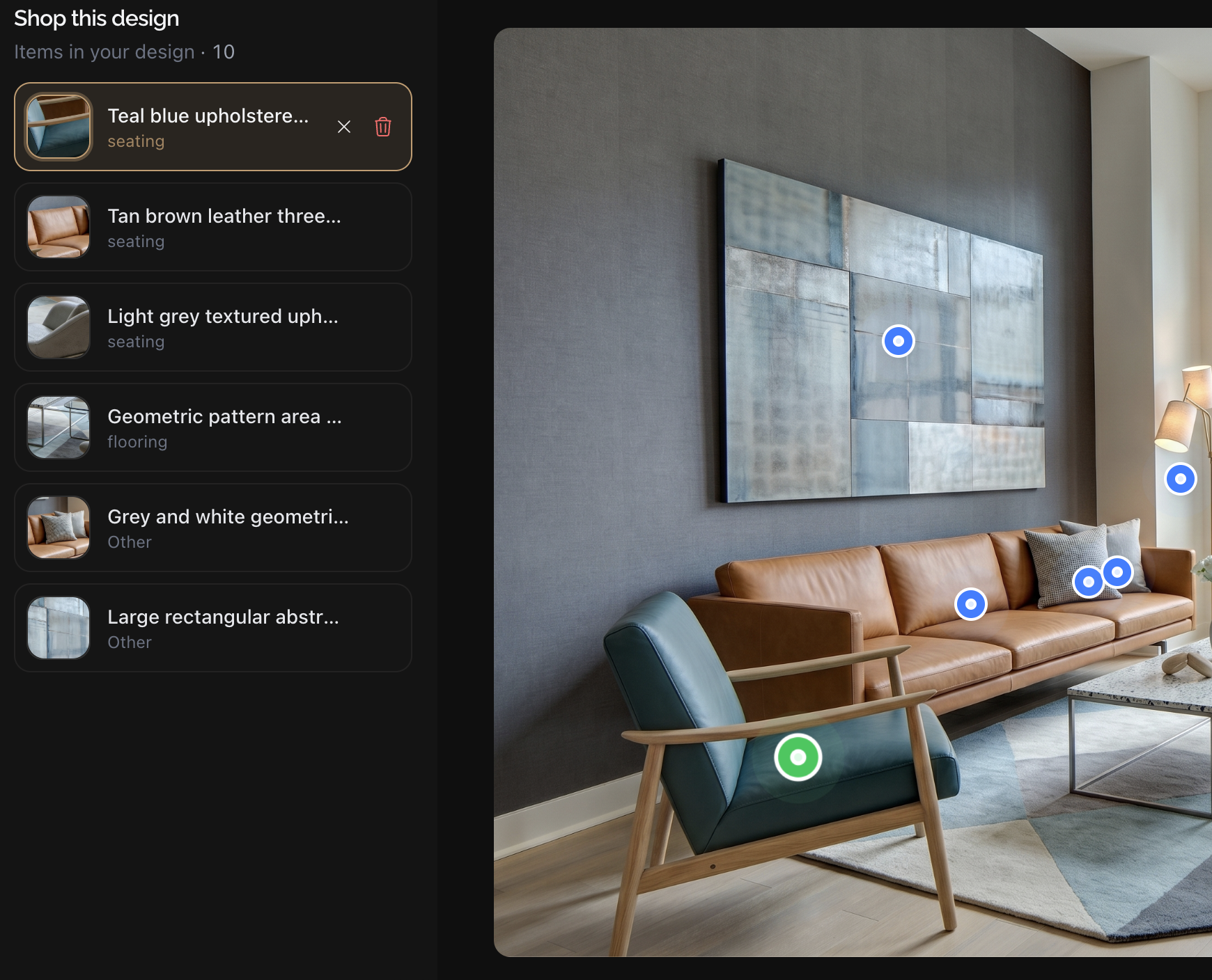 Revue turns any room photo into a fully furnished, shoppable interior design in minutes. Unlike traditional design tools, every generated item is interactive - users can click furniture, rugs, lighting, and decor to find visually similar real products and shop them directly.