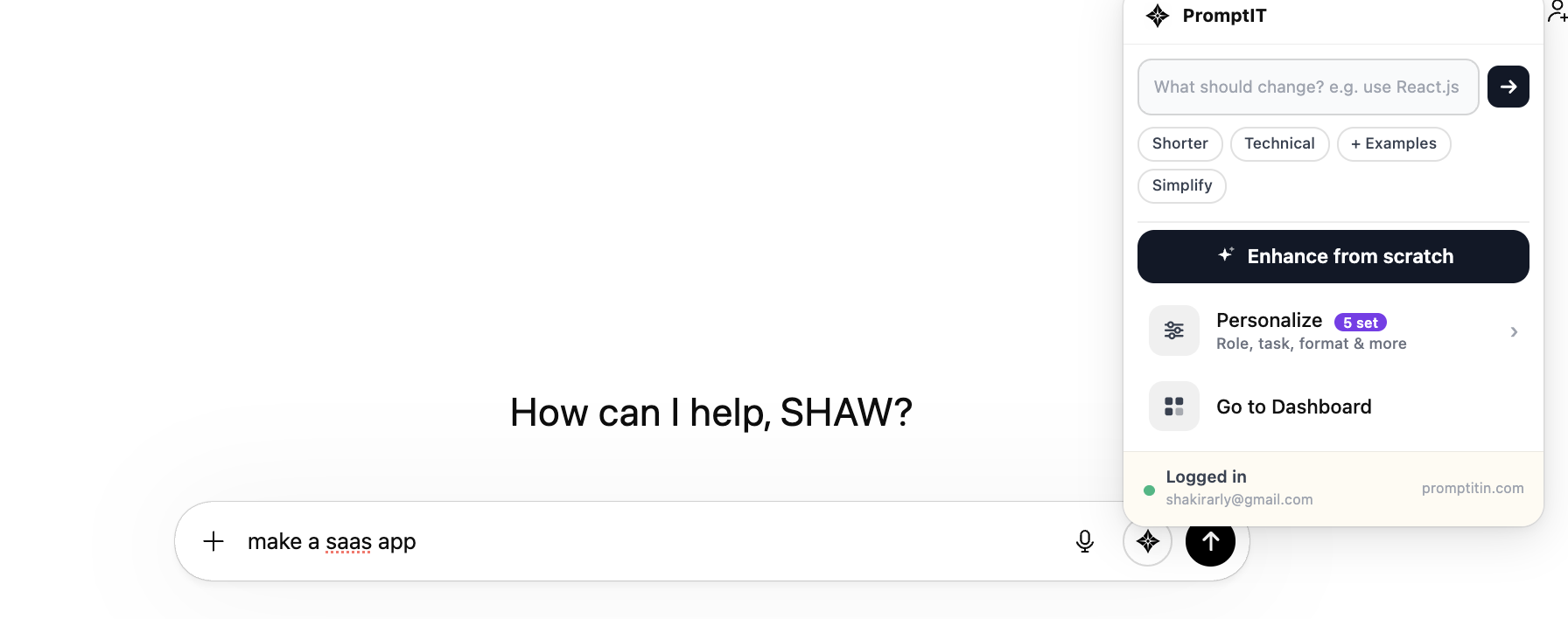 PROMPTit路 7hA few days ago, I started working on the Chrome extension. It now allows you to directly insert the prompt in ChatGPT and prompt it directly, making your boring prompt 10x Super Prompt.