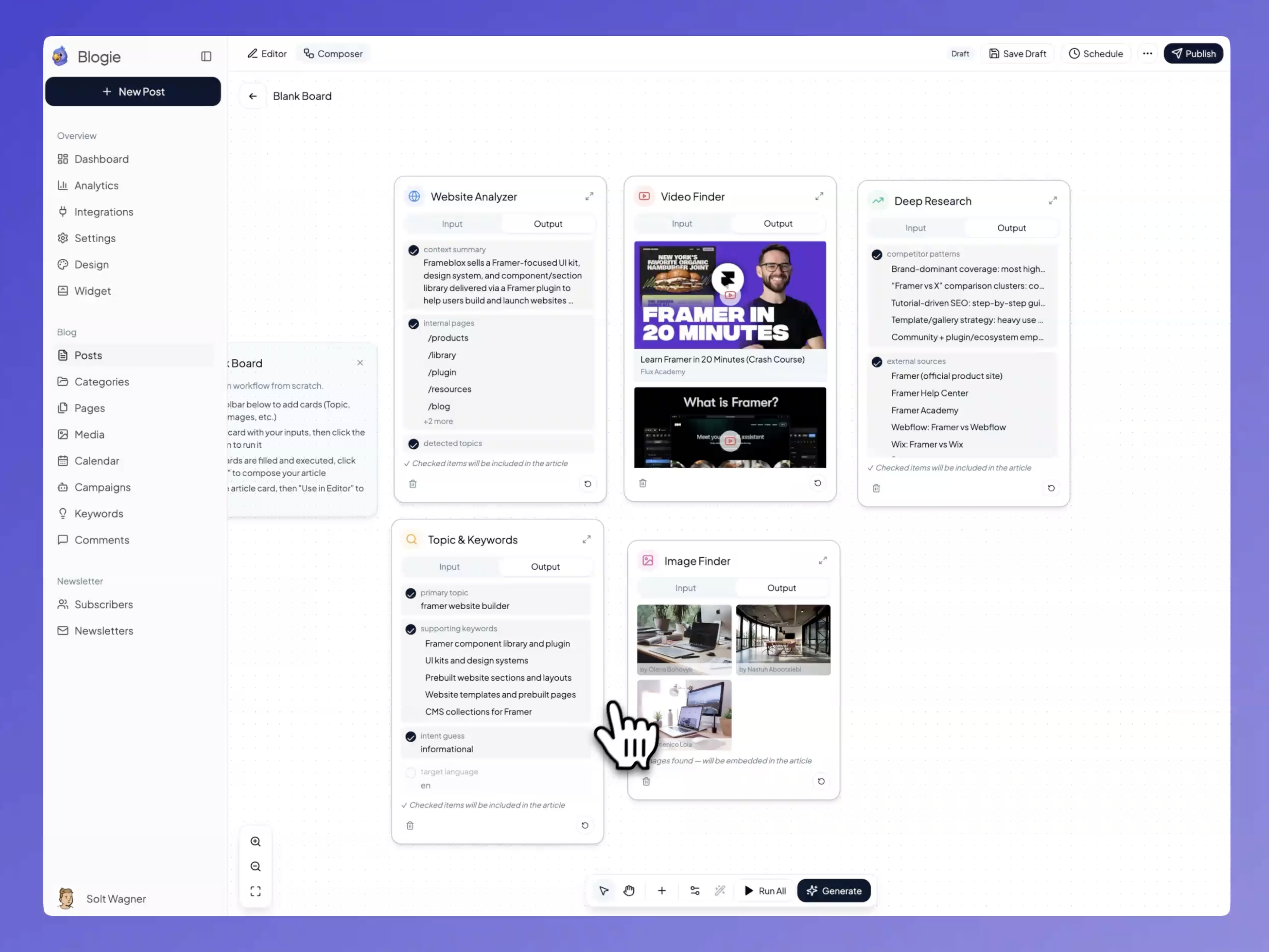 Introducing Composer in Blogie ๐งฉ A visual node-based way to build blog posts. Analyze websites, run research, extract insights from videos, add sources โ see every output, then compose the final article. Full control over how your post is created. ๐ blogie.ai